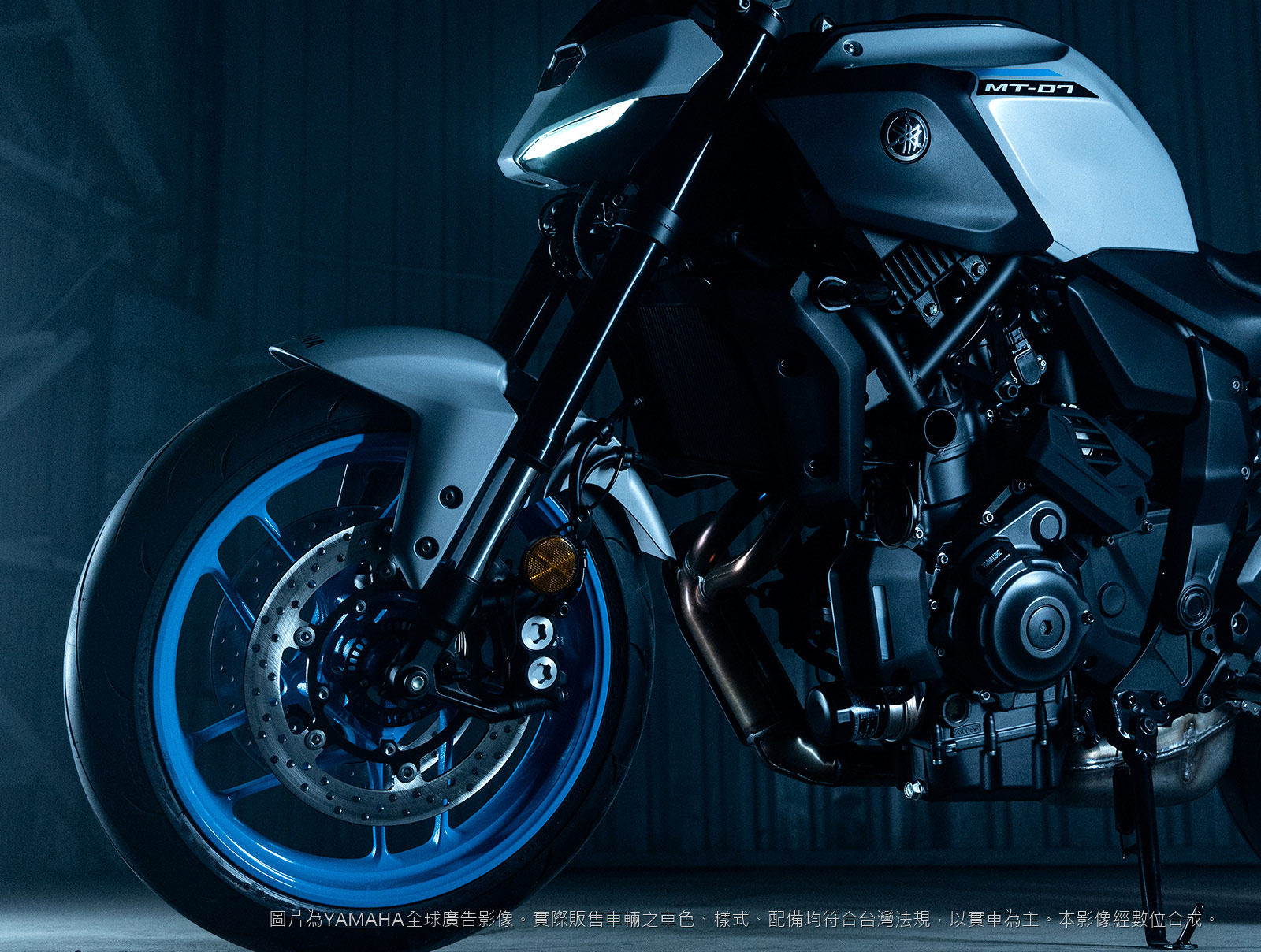 MT-07 採用高張力鋼管車架,在維持輕量化的前提下,提升扭轉、縱向與橫向剛性達 12~13%,帶來更紮實的操控基礎。