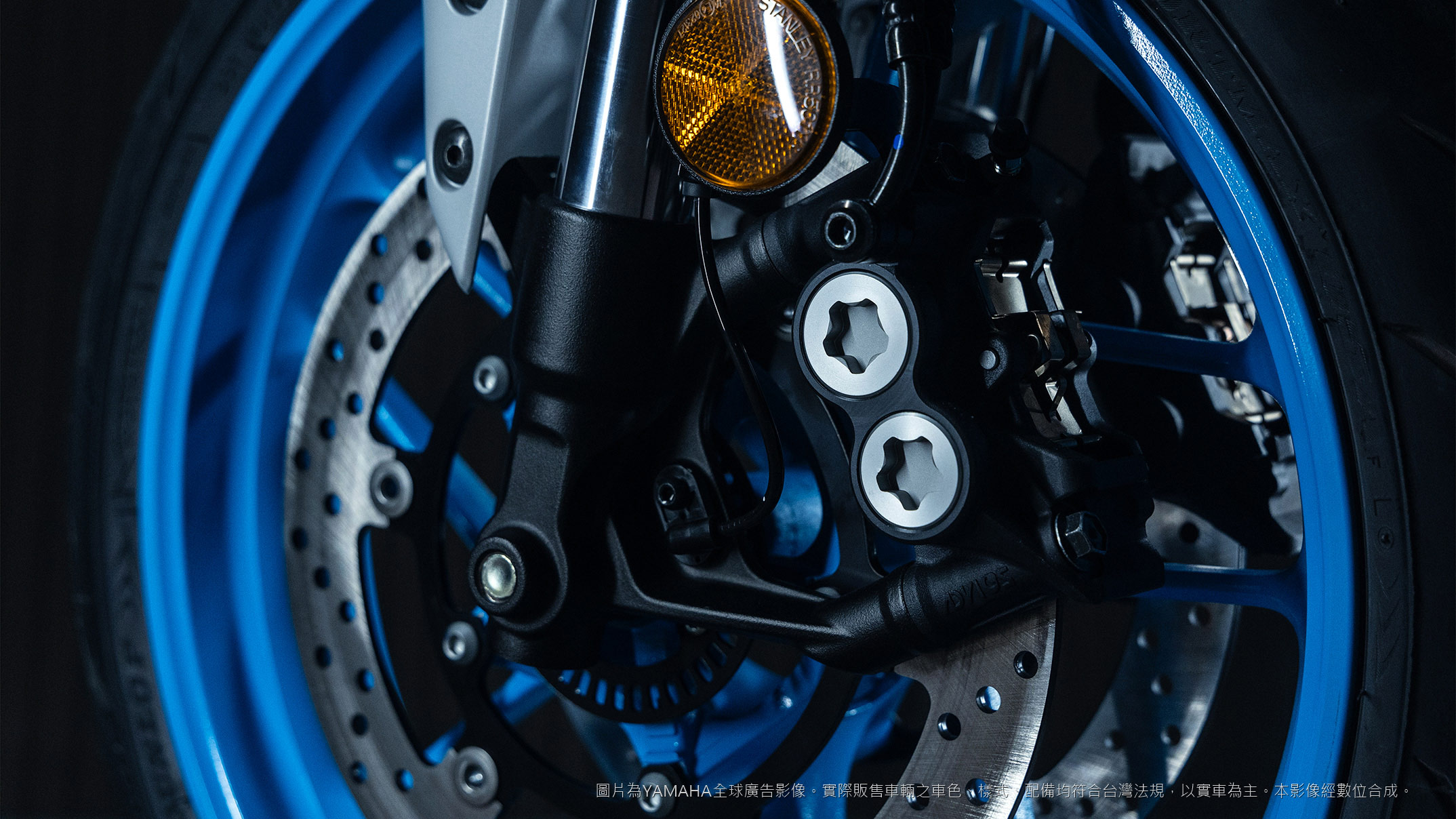 全新 298mm 雙前碟盤,搭配輻射式四活塞卡鉗設計,提供更穩定的制動剛性與優異的煞車手感。
