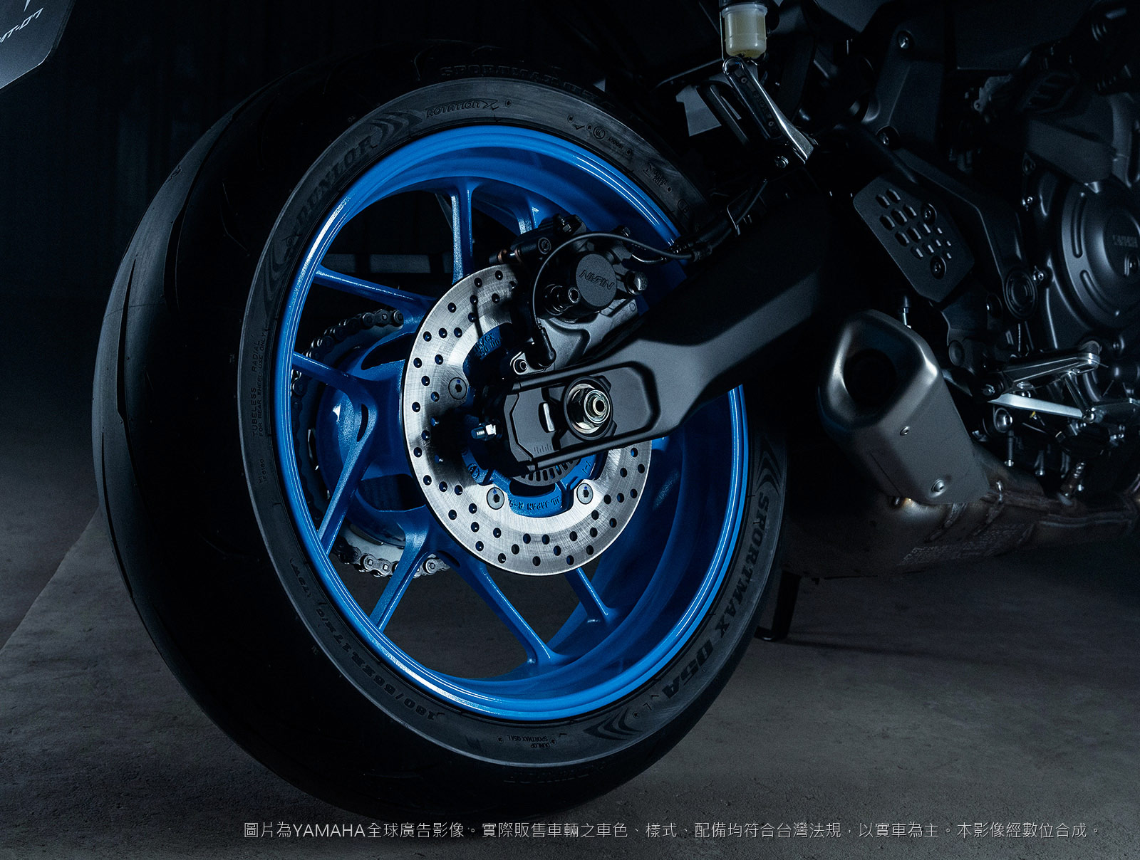 搭配原廠選用的 Dunlop Sportmax Q5A 輪胎,具備優異抓地力與輕快操控特性,滿足日常通勤與熱血操駕的全方位需求。