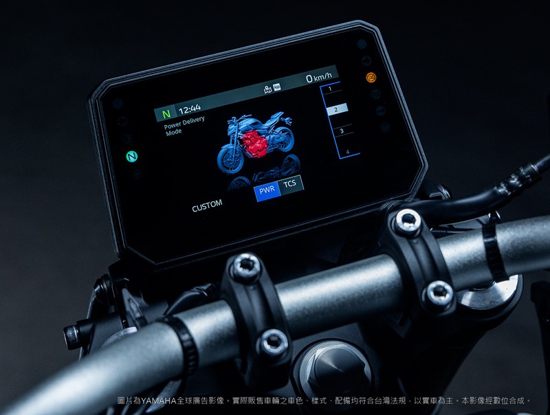 MT-07 搭載 5 吋全彩 TFT 儀表,支援多款主題顯示與智慧連線功能。