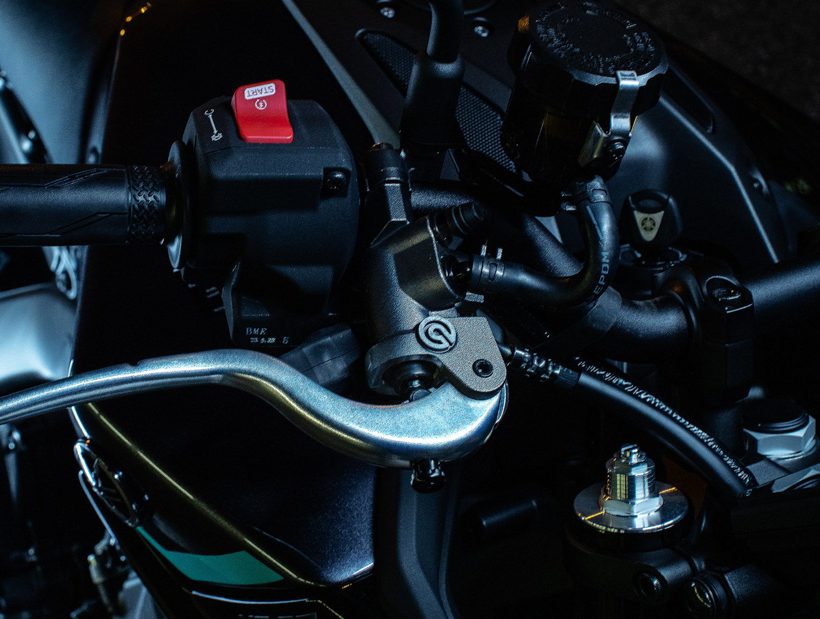 全新Brembo 直推式煞車總泵,搭配上 298 mm大直徑雙前碟盤及四活塞卡鉗,不僅提供線性的操作手感,提供更出色的煞車性能。
