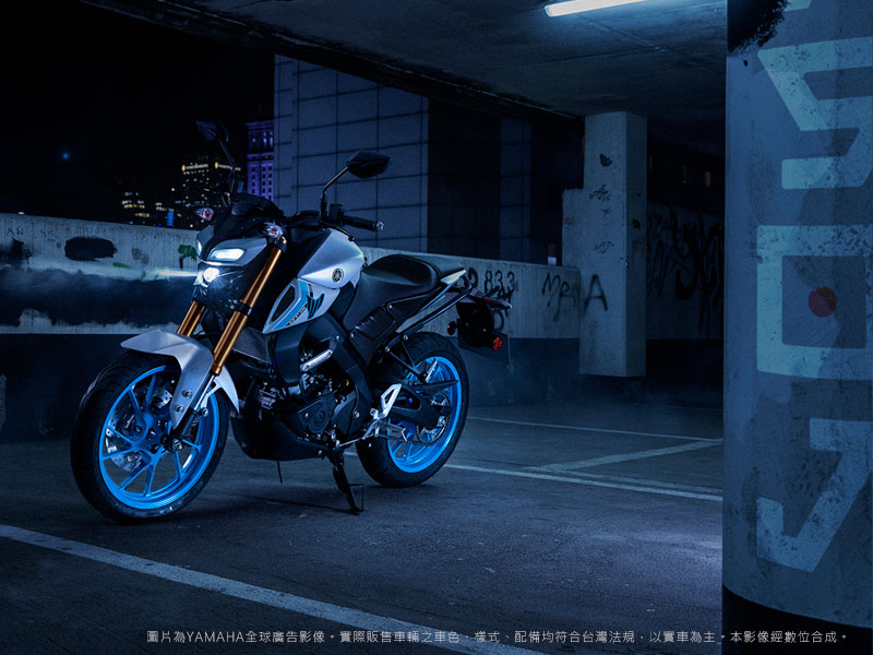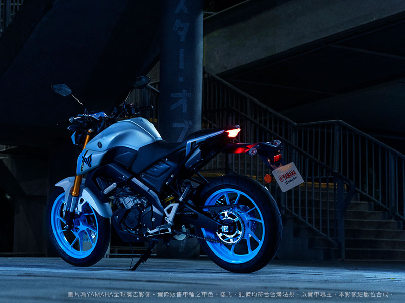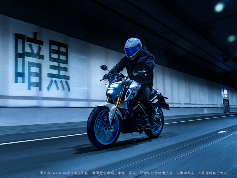 MT-15 搭載 155 c.c. 水冷高性能4V引擎,結合高自由度的騎乘姿勢與支撐性優異的懸吊,穿梭闇夜橫行無阻,源自跑車的Deltabox車架披覆於MT肌肉線條下,狂放不羈的個性顯露無遺。