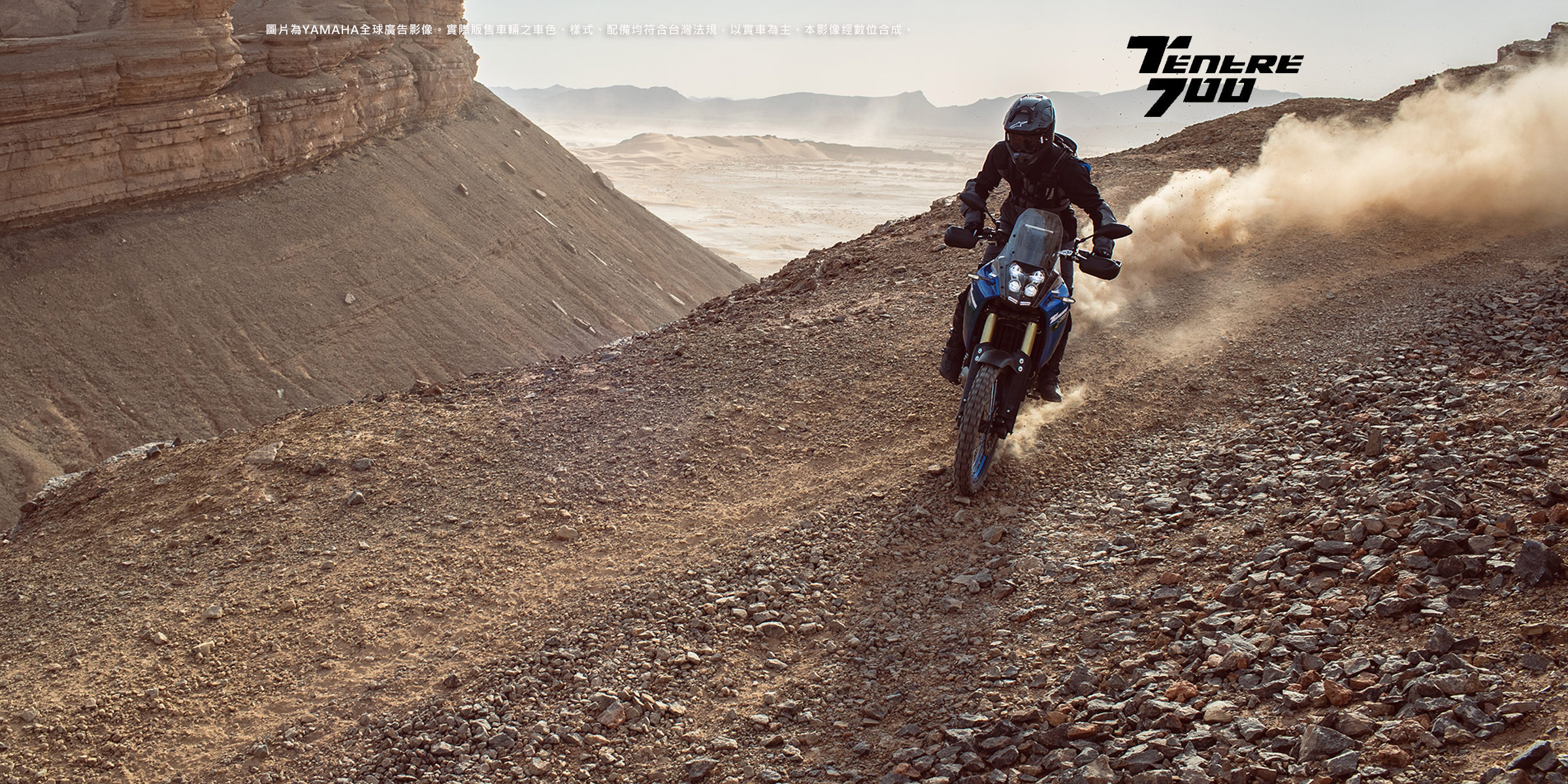 全新「Ténéré 700」延續「Ténéré」家族之名與「XT」車型代號,以On-road:Off-road=1:9為開發初衷,不僅繼承車系冒險精神,更期望以出色的越野性能,將滿足騎乘摩托車到任何地方的夢想。