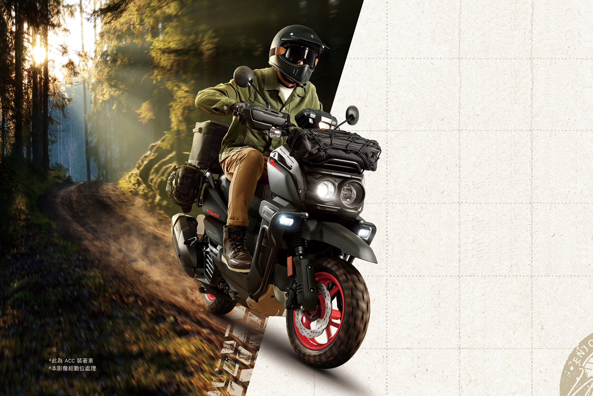 配置OFF-ROAD血統塊狀巧克力胎,輕易征服地形,任你放肆出走